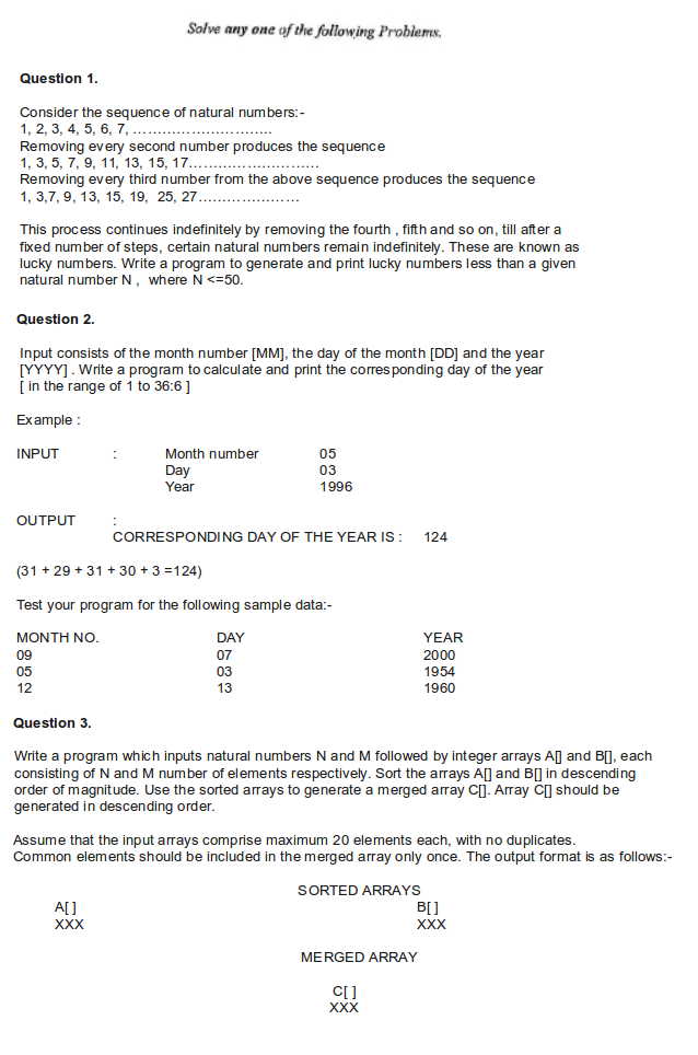 ISC 2001 Computer Science Paper 2 (Practical) Question Paper