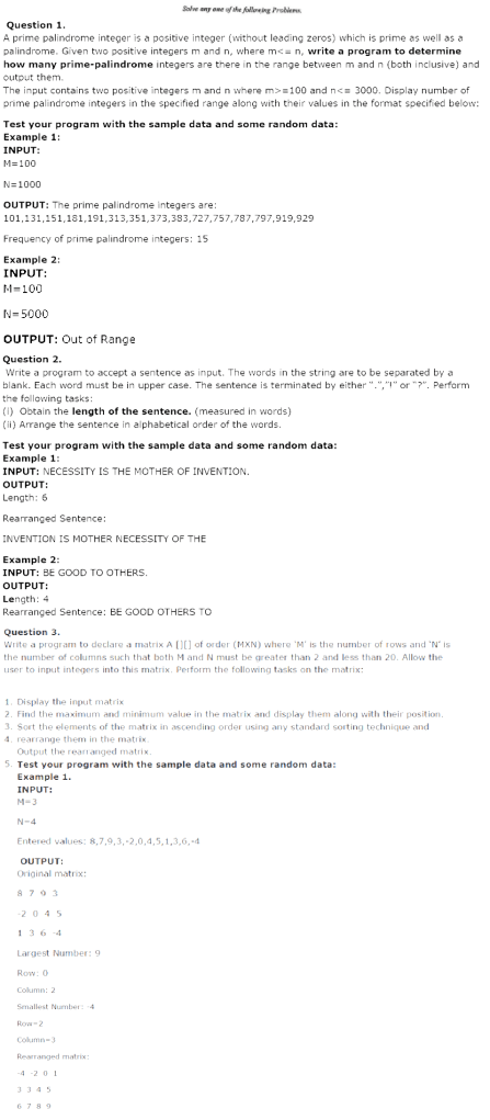 ISC 2012 Computer Science Paper 2 (Practical) Question Paper