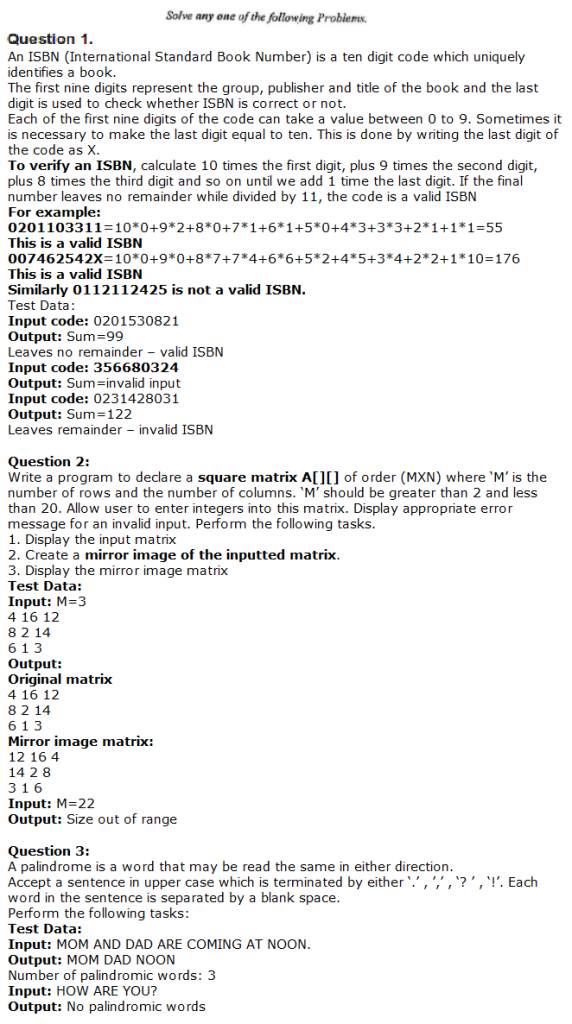 ISC 2013 Computer Science Paper 2 (Practical) Question Paper